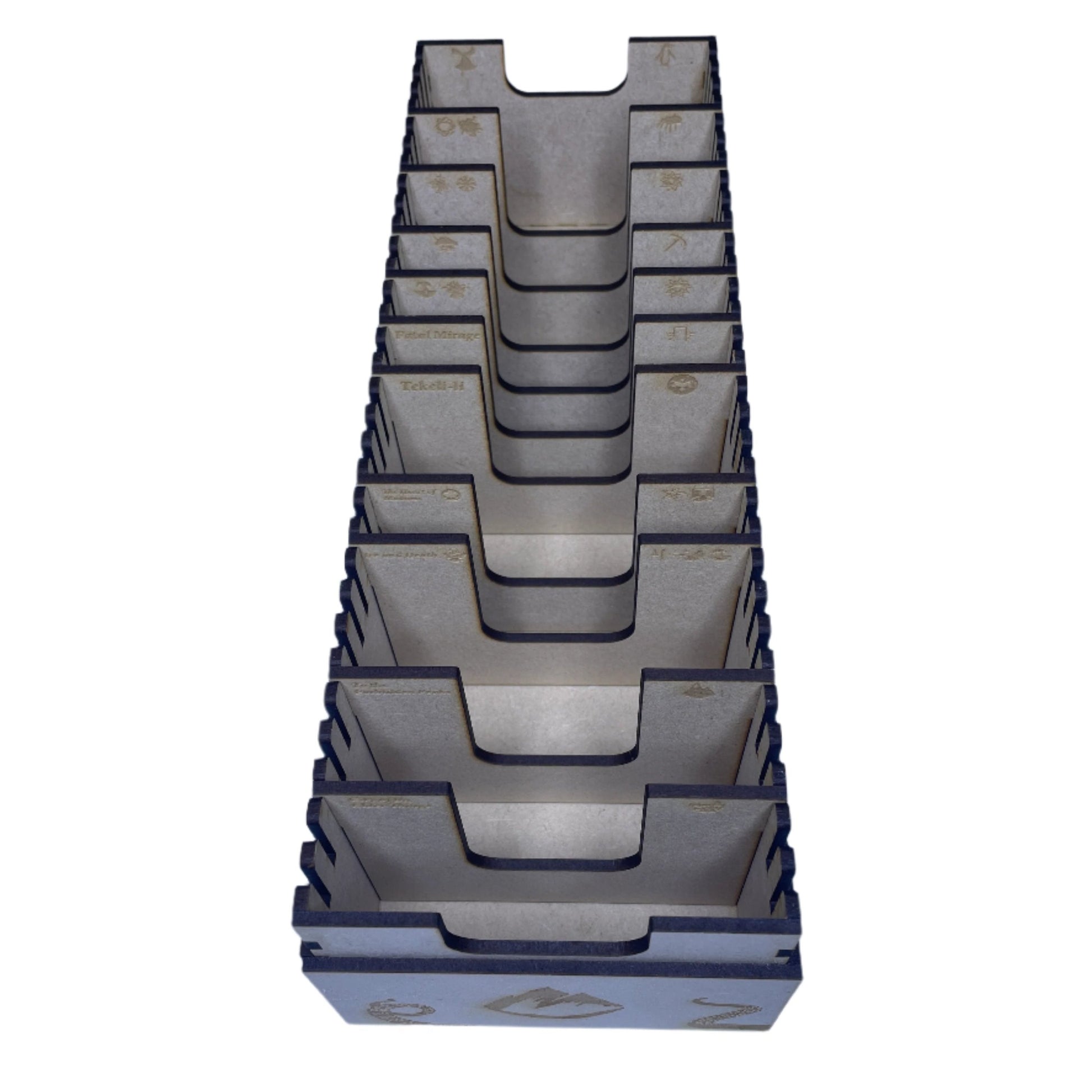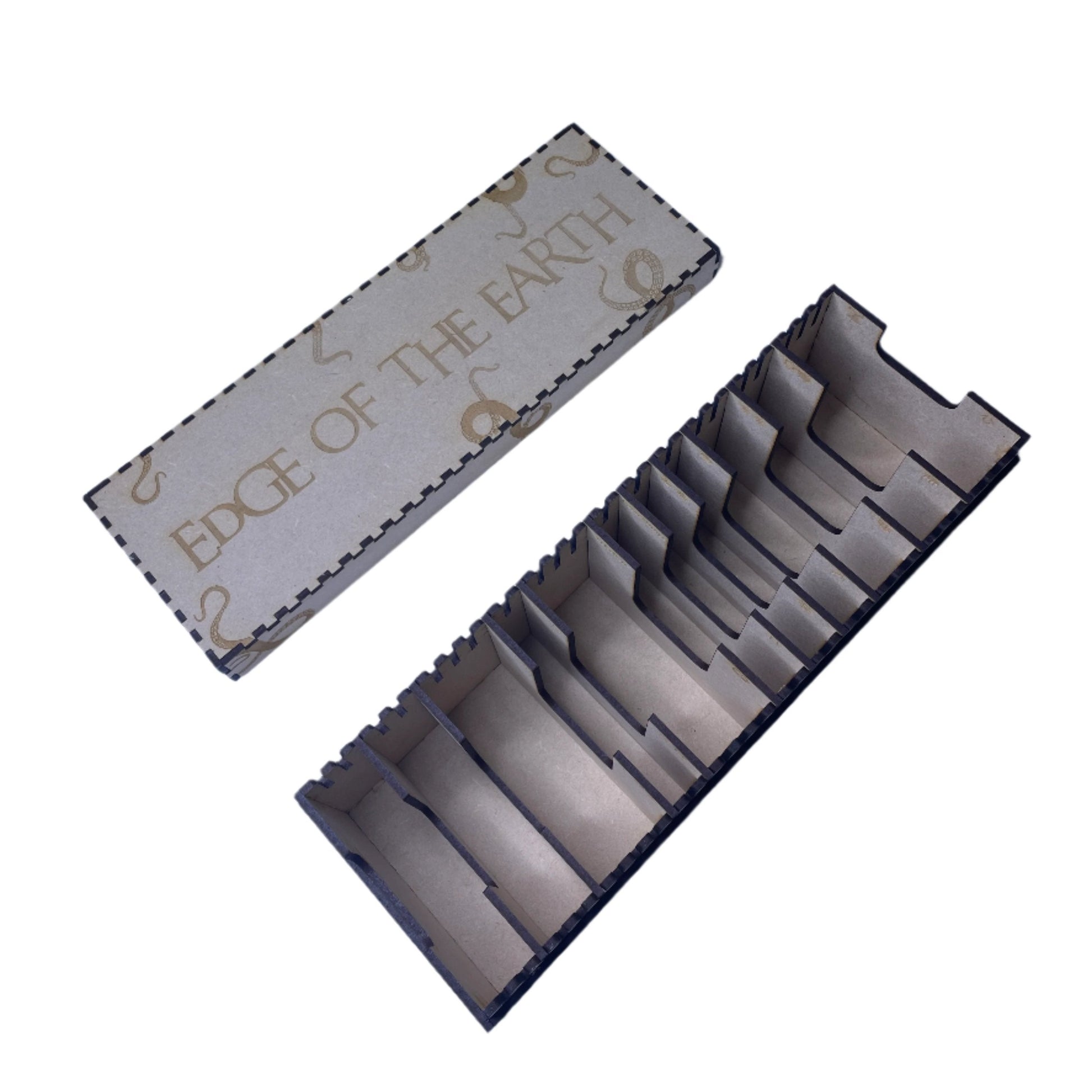Made from quality wooden components this box is designed to hold all the scenario cards included in the path to Carcosa cycle. Each divider is labelled for ease of locating each specific set of cards.