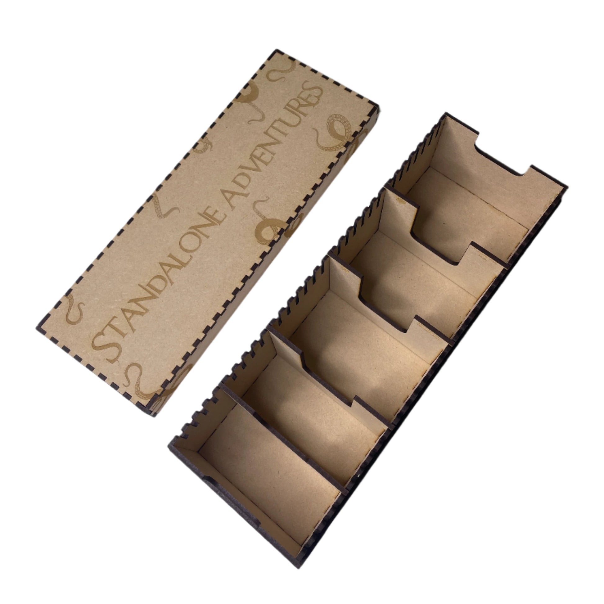 Store your stand alone scenarios in a safe and organised manner with this custom box. Each box allows for the storage of 6 stand alone scenarios. When purchasing you have option of which 6 scenarios you would like. You will receive the diverters for each selected scenario as well as having the set symbol engraved on the edge of the box for easy identification.