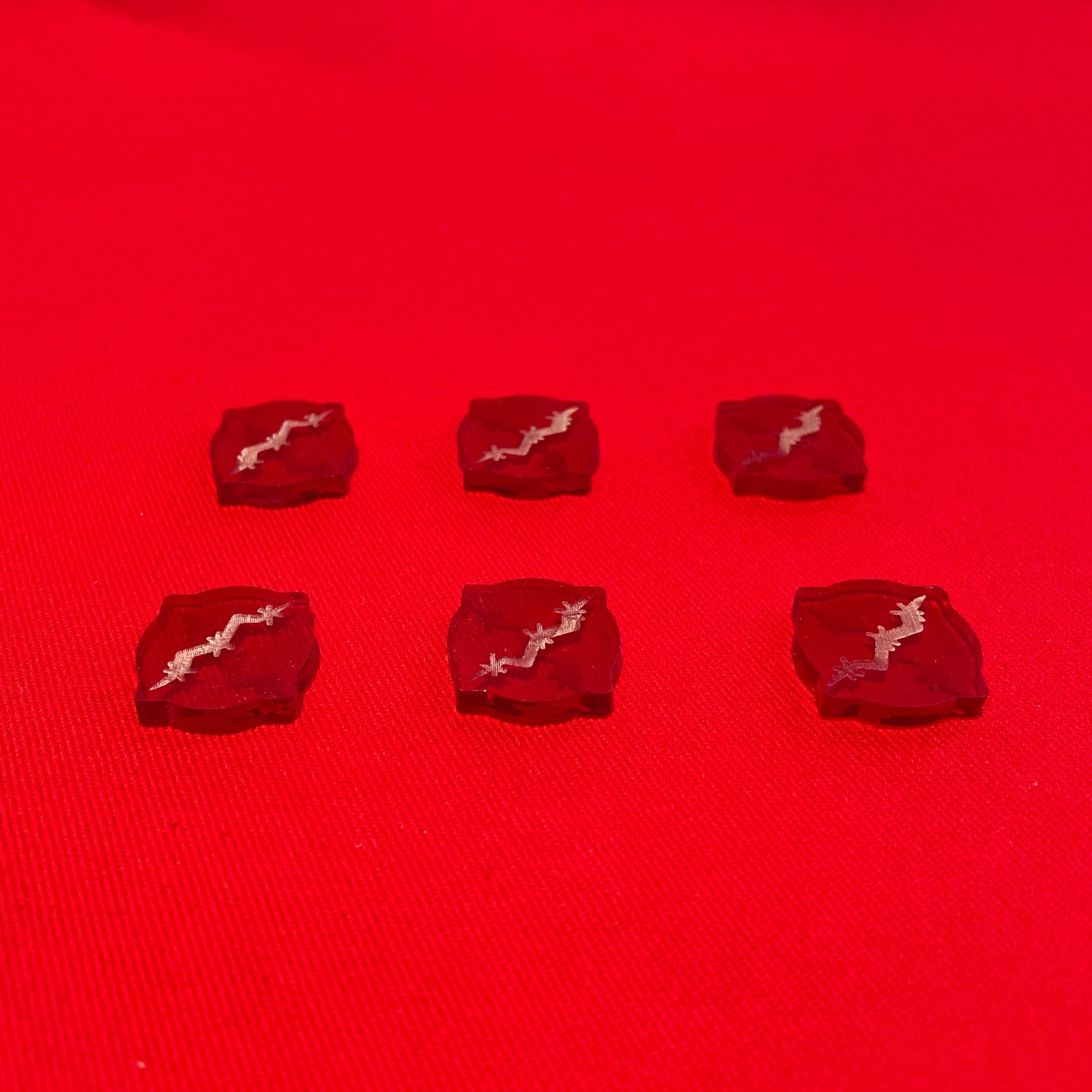 Simple yet effective transparent acrylic tokens made to last and of quality materials. These simple tokens will be sure to add a splash of colour to your next adventure without overwhelming the theme.