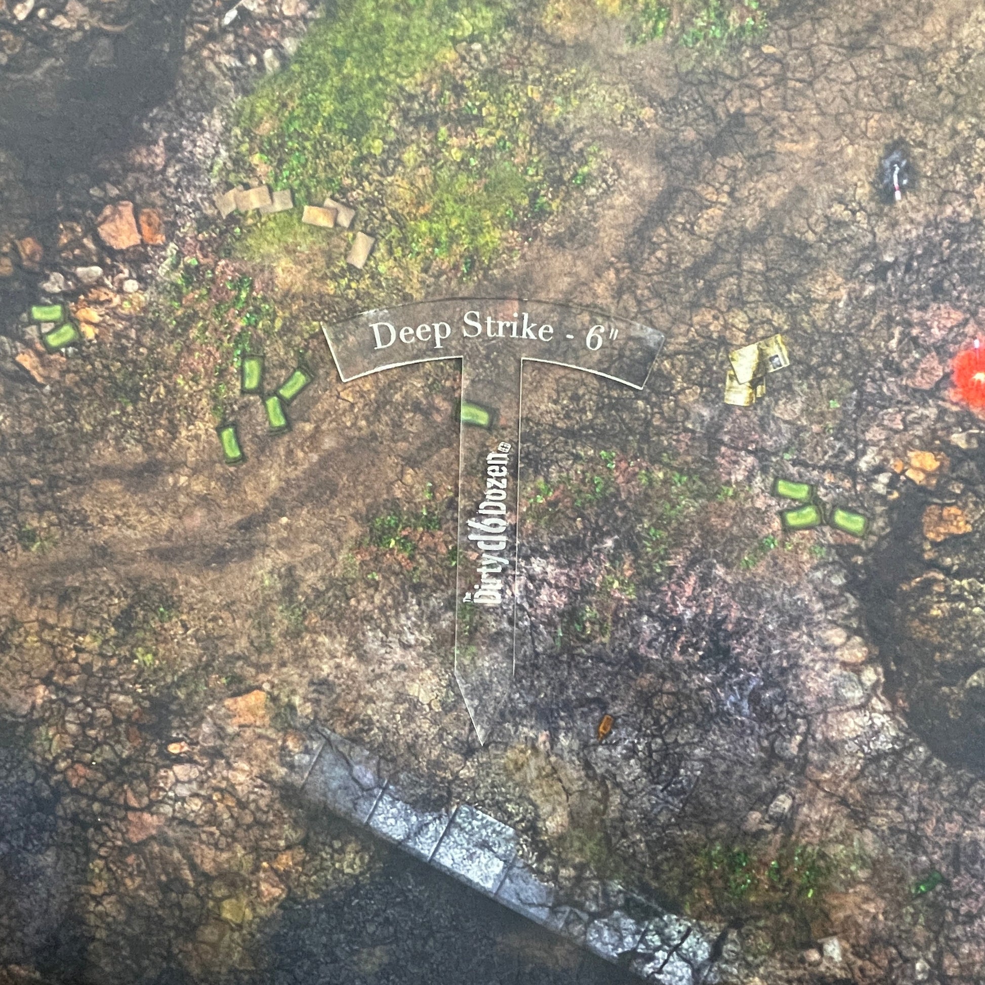 Experience the ease and precision of measuring with our 6" Deep Strike Markers, crafted from transparent acrylic. No more struggling with tape measures - make your models' movements effortless!