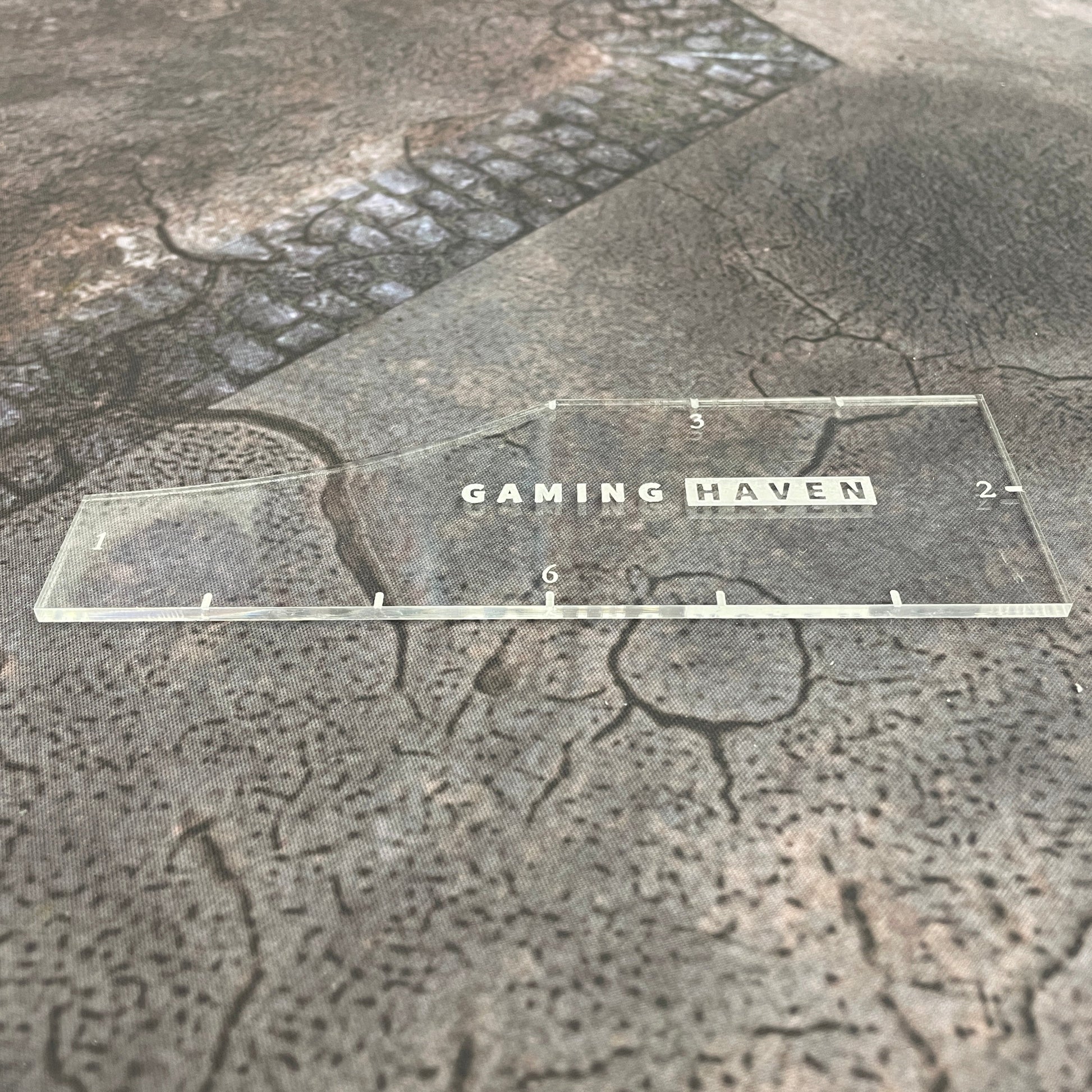 Simple yet elegant this wargaming measurement tool allows for easy measurement of distances from 1-6 inches with pre-set measurements on each side and notch indicators at each inch interval.